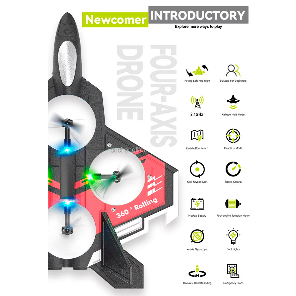 El Avión Dron de Combate es la mezcla perfecta de tecnología avanzada y diseño futurista inspirado en cazas militares. Ideal para quienes buscan una experiencia de vuelo emocionante y la capacidad de capturar imágenes aéreas espectaculares.