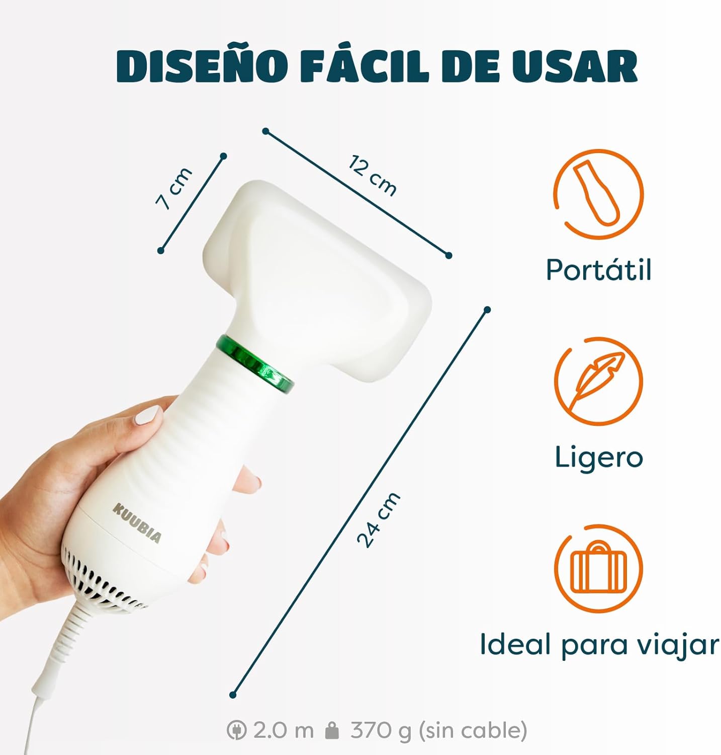 Peso del producto: 13 oz / 370g Voltaje de entrada: ca 220V / 60HZ Potencia: 300 W Equipo: 2 engranajes Longitud del Cable: 6,6 pies/2 m Color: Blanco verde Peine: peine de aguja fina Material: ABS y acero inoxidable Tamaño del producto: 25x12x7mm Funcionamiento silencioso: bajo nivel de ruido