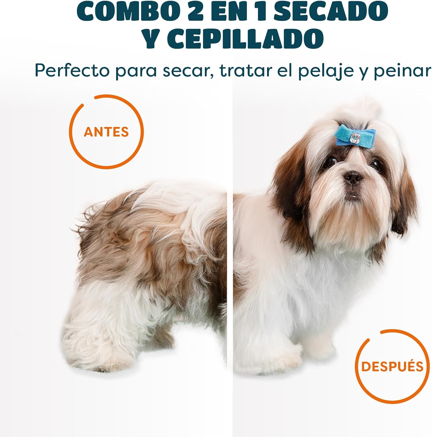 Este secador de aseo para mascotas multifuncional 2 en 1 es la solución para secar a tu mascota con cuidado amoroso. Después de un baño, paseo lluvioso o en un frío día de invierno, esta secadora y cepillo se pueden usar para proporcionar calidez y comodidad a su perro. Un cepillo rebanador para eliminar enredos y piel suelta, para mantener el pelo de las mascotas suave y limpio.